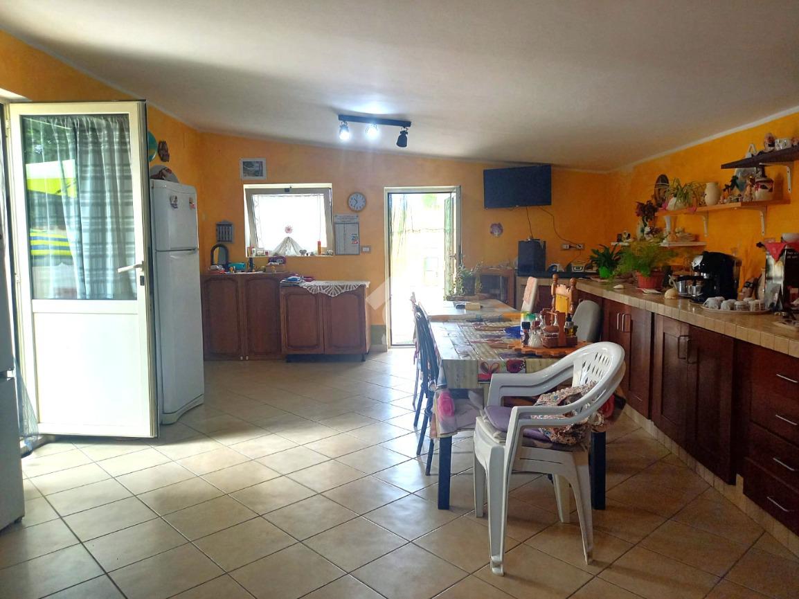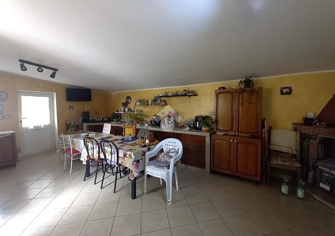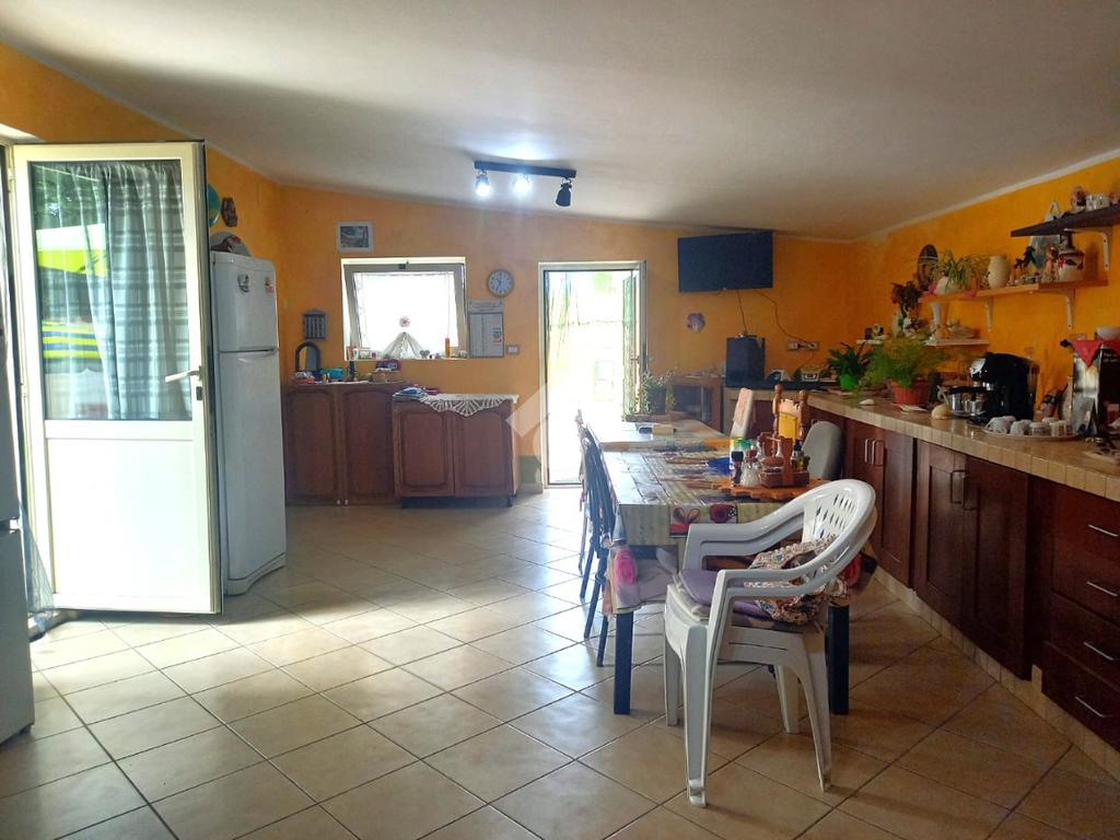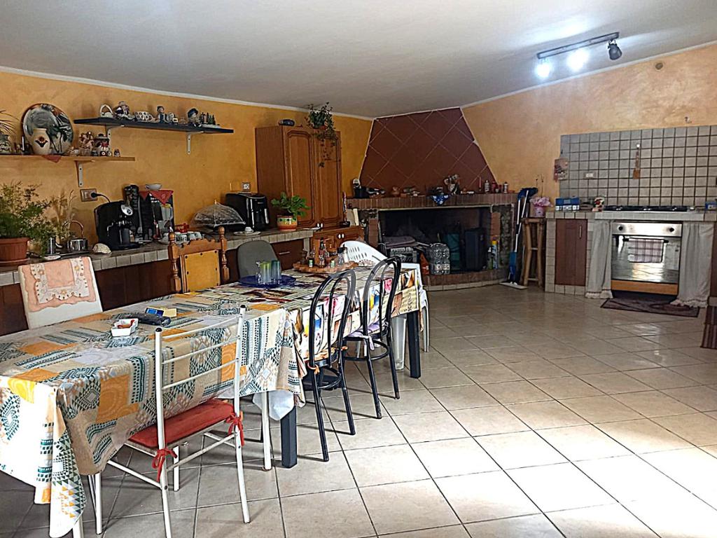 Entrando nella zona giorno troviamo un comodo soggiorno, un'ampia sala da pranzo con cucina a vista e camino,con doppio accesso allo spazio esterno.