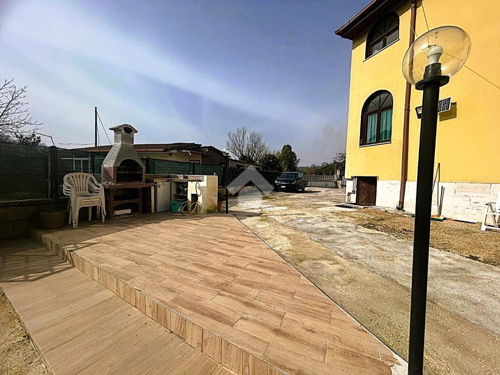 Completa la soluzione l'ampio giardino con barbecue, ripostiglio ed accesso al piano seminterrato sbancato, da completare.